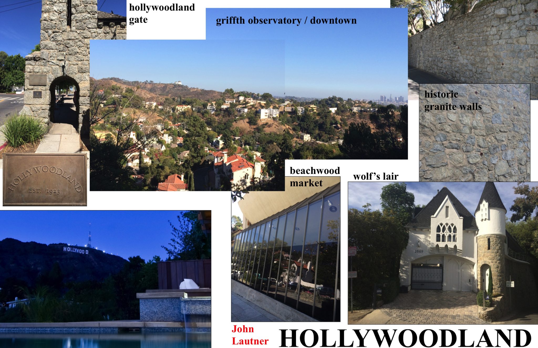 The original architecture and landscaping of Hollywoodland looked to varied sources in Europe for its inspiration, including France, Italy, and Spain with even the turreted castles of Germany recreated and still standing in the Hollywood Hills. The historic granite walls built from stone blasted out of the hillsides to create flat building pads and drivable roads are still a signature aspect of the neighborhood. The erection of the Hollywoodland sign in 1923 expressed that Hollywood was now not just a physical location but an “industry, a lifestyle and increasingly, an aspiration.