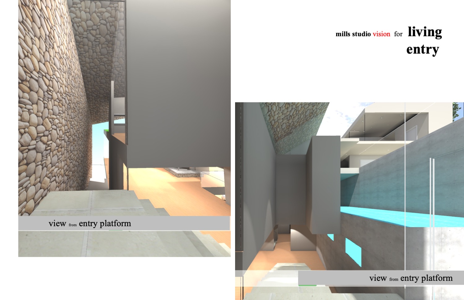 The Schematic Design process is where mills studio clarifies its design intent and then communicates the design intent to the Owners. The Schematic Design process aligns the DTS design intent with mills studio’s architectural agenda. The Schematic Design sets forth the parameters and context that mills studio has determined are significant to the design of the DTS Project House. The Schematic Design defines how the DTS Project House will integrate with its site and topography and interact with the landscape. The Schematic Design develops the narrative of how vehicles and pedestrians approach the property, enter the site, and the paths to eventually enter the house and garages. Â