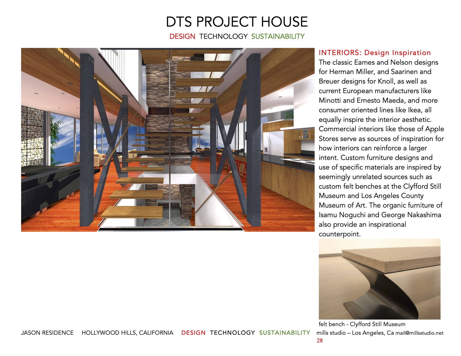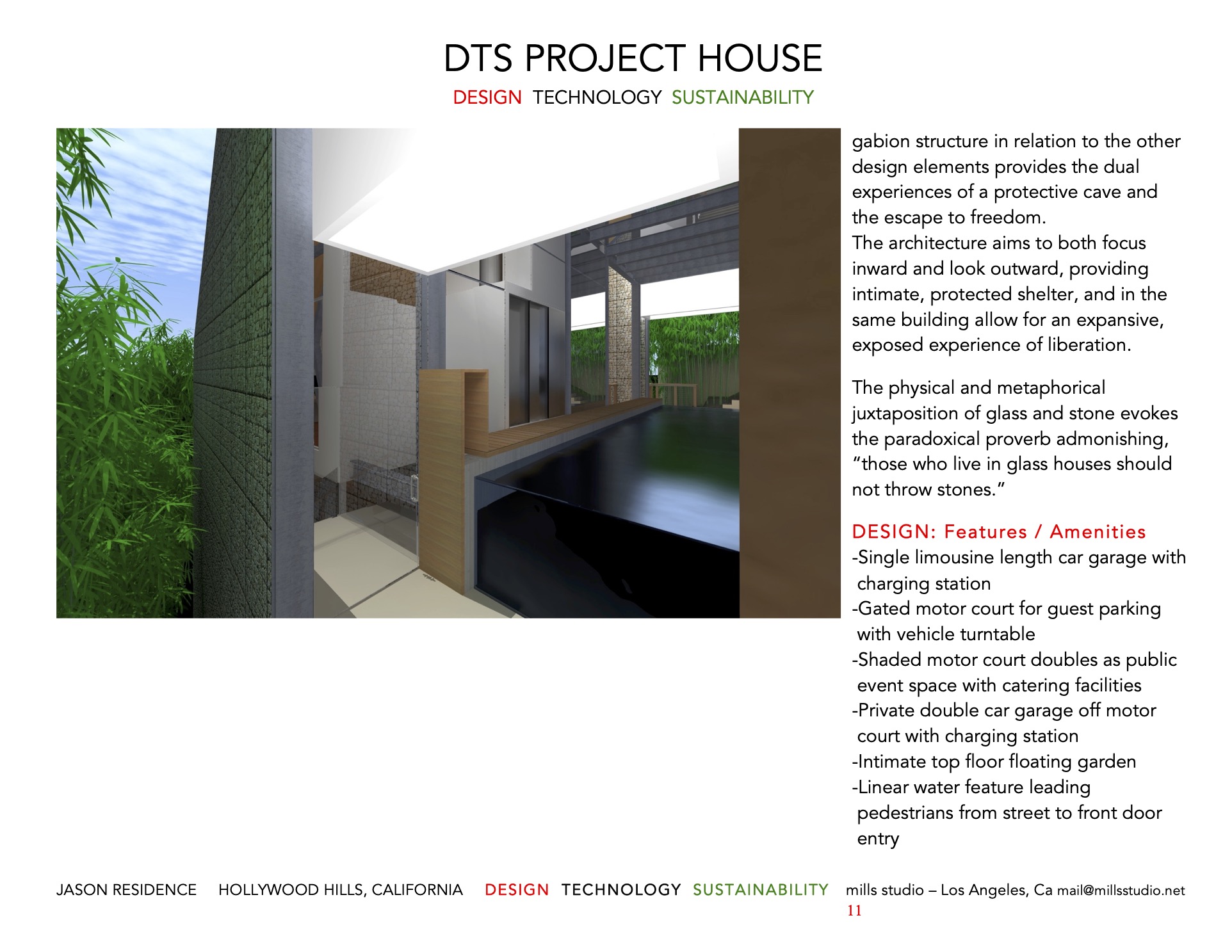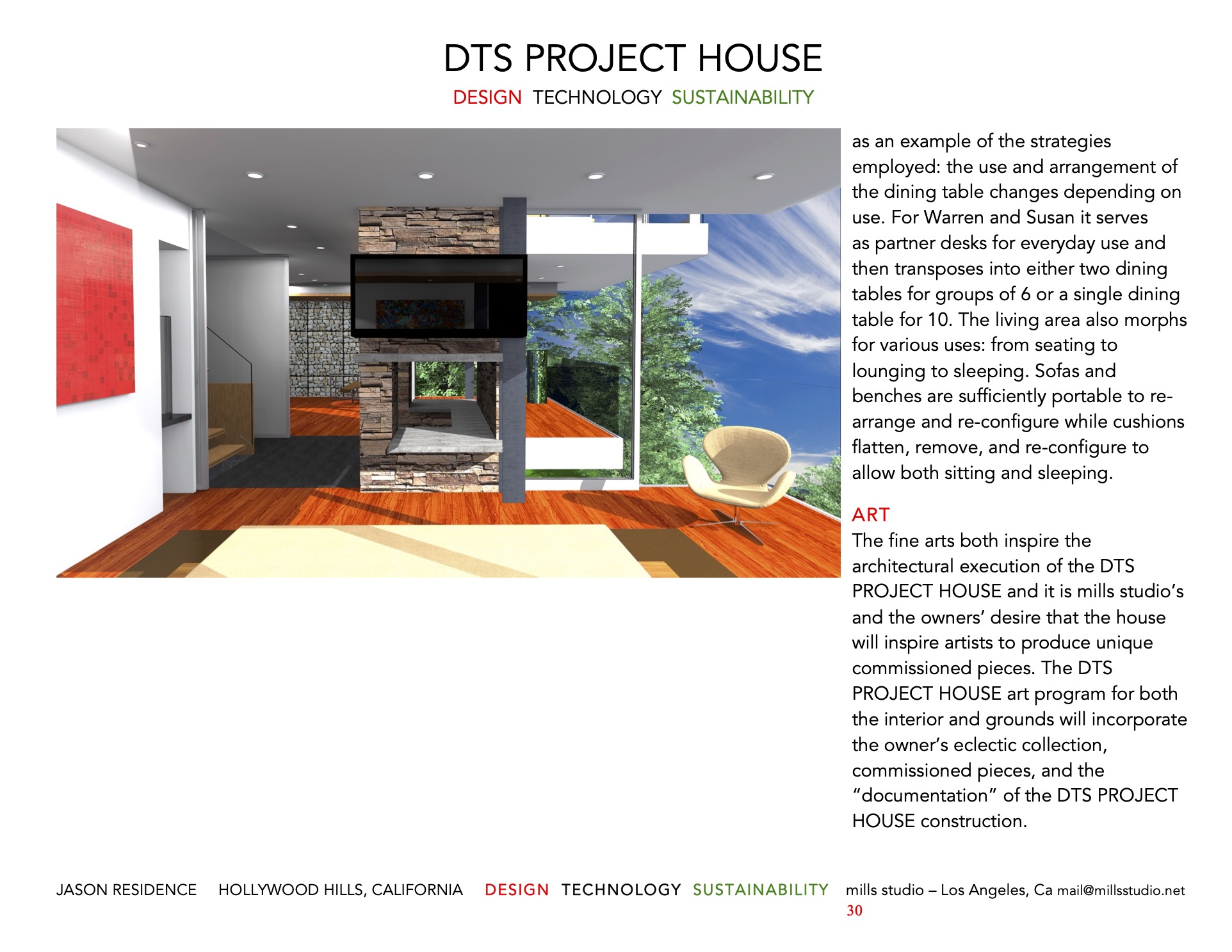 As part of the Schematic Design Phase, a Project Narrative was prepared to tell the story of the DTS Project House. The Narrative attempts to delineate the Owners’ and mills studio’s intentions for the project and the effort required to express those intentions. The Narrative attempts to reveal the people, works, and ideas that inspire and inform the DTS Project House and attempts to show the discipline and holistic approach required to create the DTS Project House. The Narrative attempts to covey that communicating and making tangible the primal importance of the institution of the family is what makes the single family residence as significant a work of architectural art as any other building type.