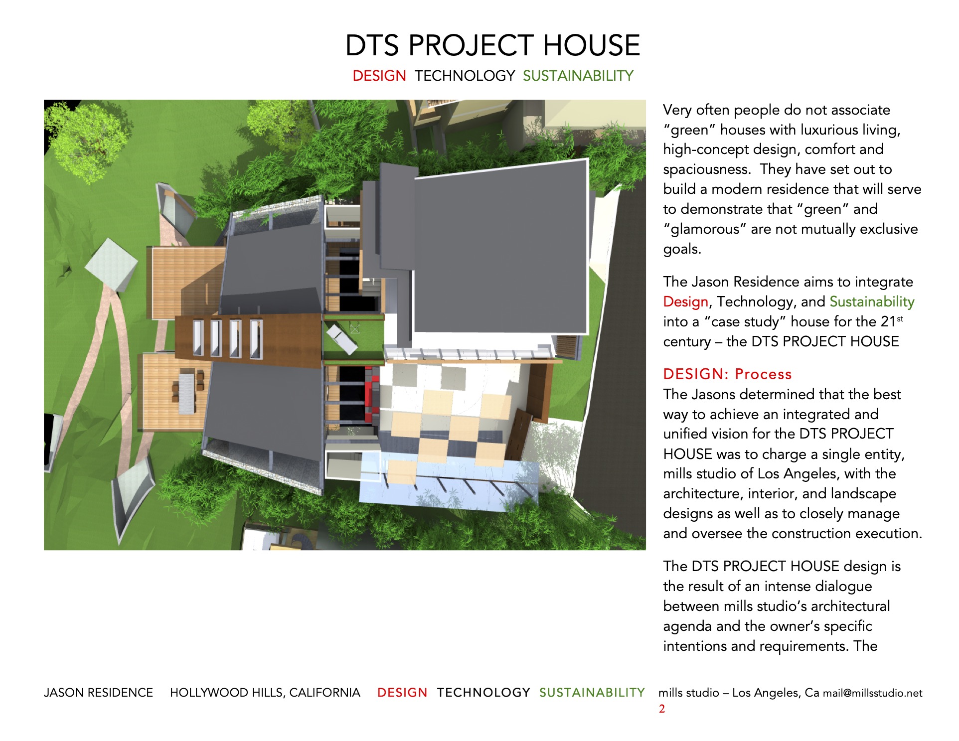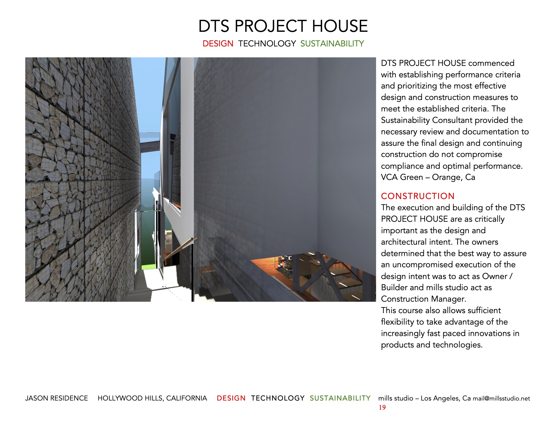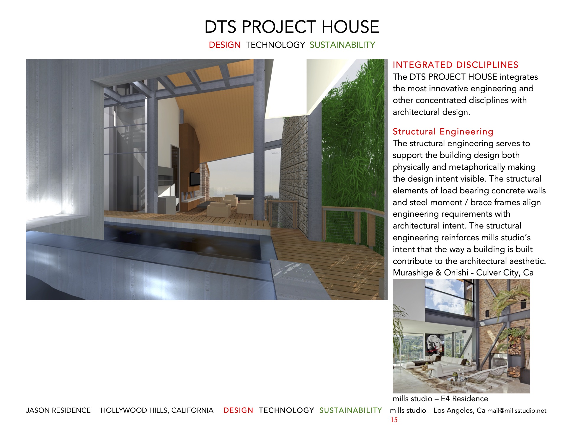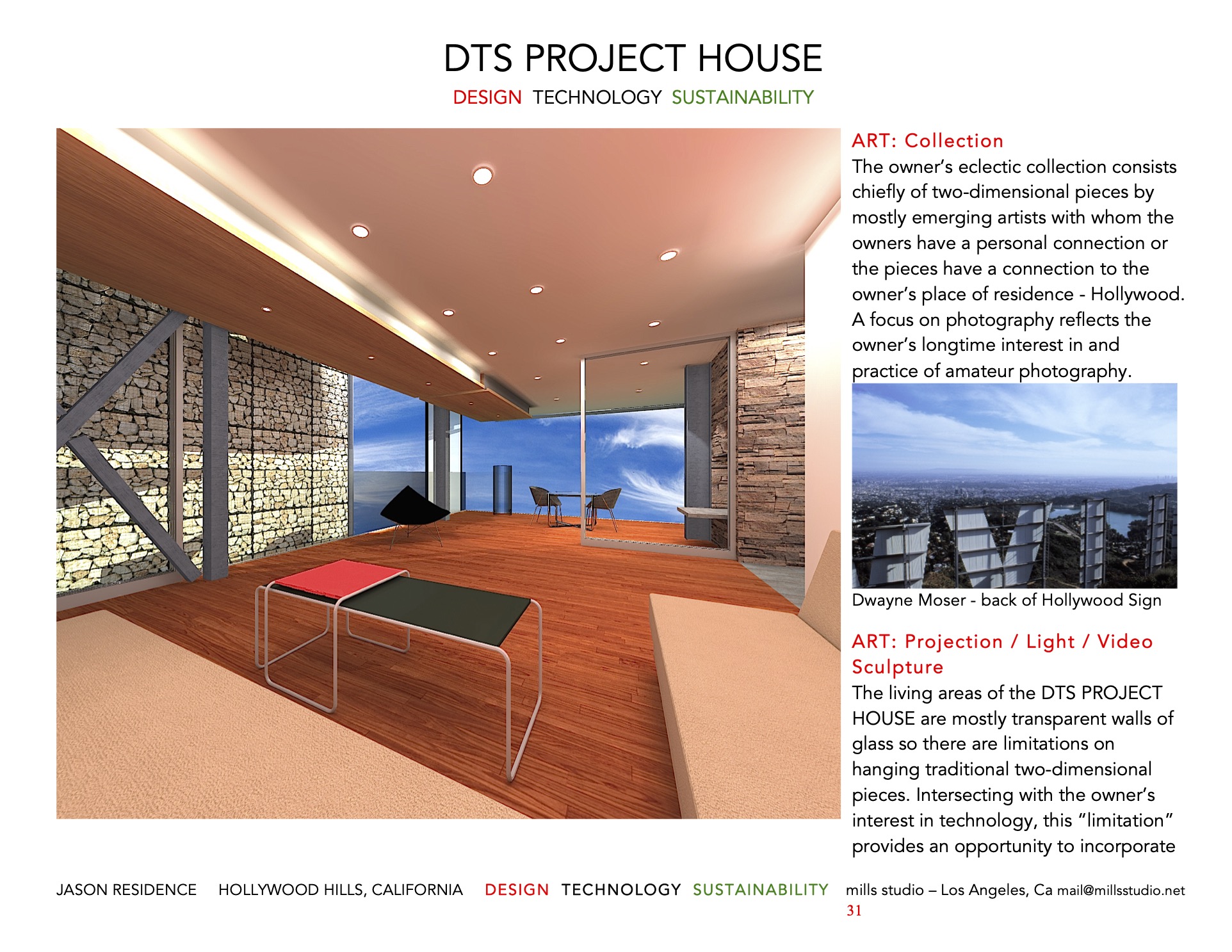 As part of the Schematic Design Phase, a Project Narrative was prepared to tell the story of the DTS Project House. The Narrative attempts to delineate the Owners’ and mills studio’s intentions for the project and the effort required to express those intentions. The Narrative attempts to reveal the people, works, and ideas that inspire and inform the DTS Project House and attempts to show the discipline and holistic approach required to create the DTS Project House. The Narrative attempts to covey that communicating and making tangible the primal importance of the institution of the family is what makes the single family residence as significant a work of architectural art as any other building type.