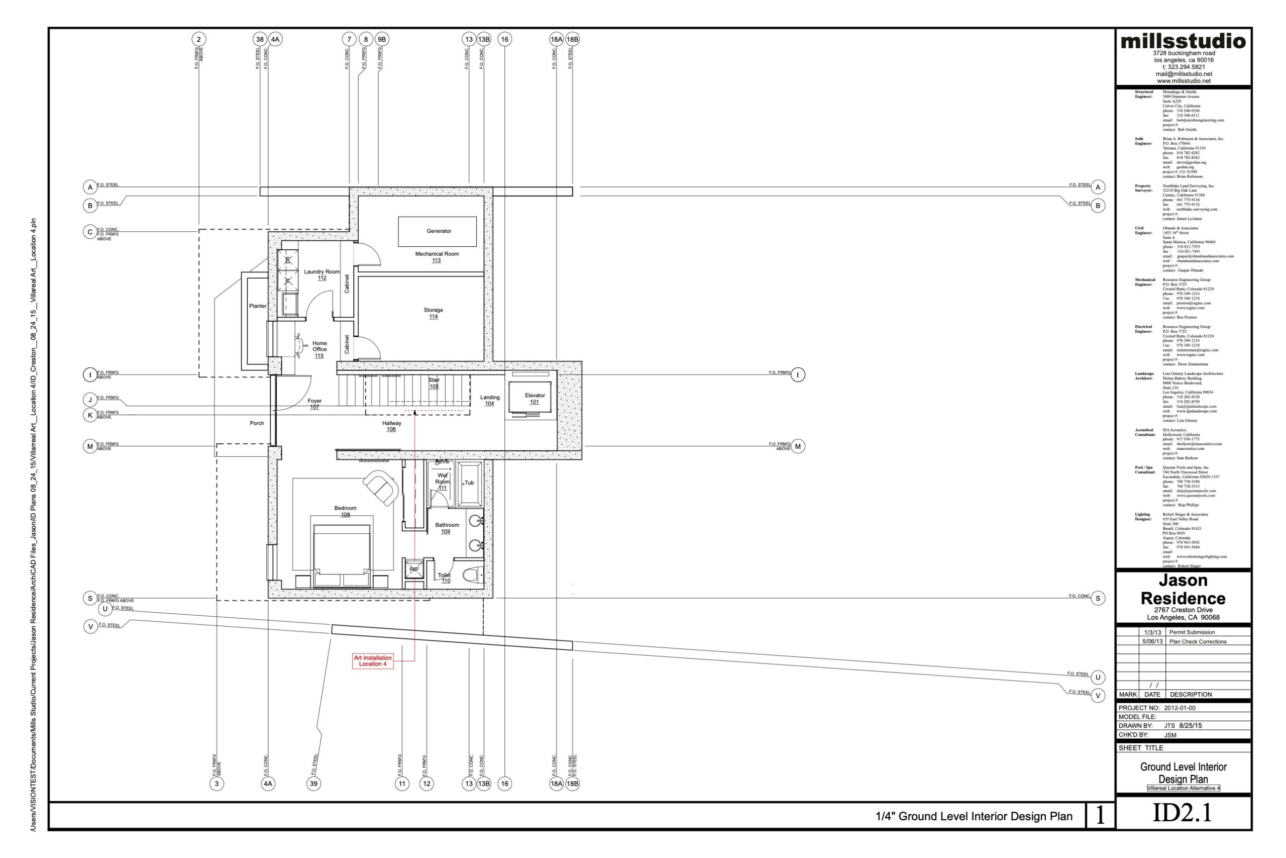- Consult with mills studio and low voltage sub-contractor to clarify and confirm technical requirements for proper interfacing with other relevant building systems installed and programmed by others.