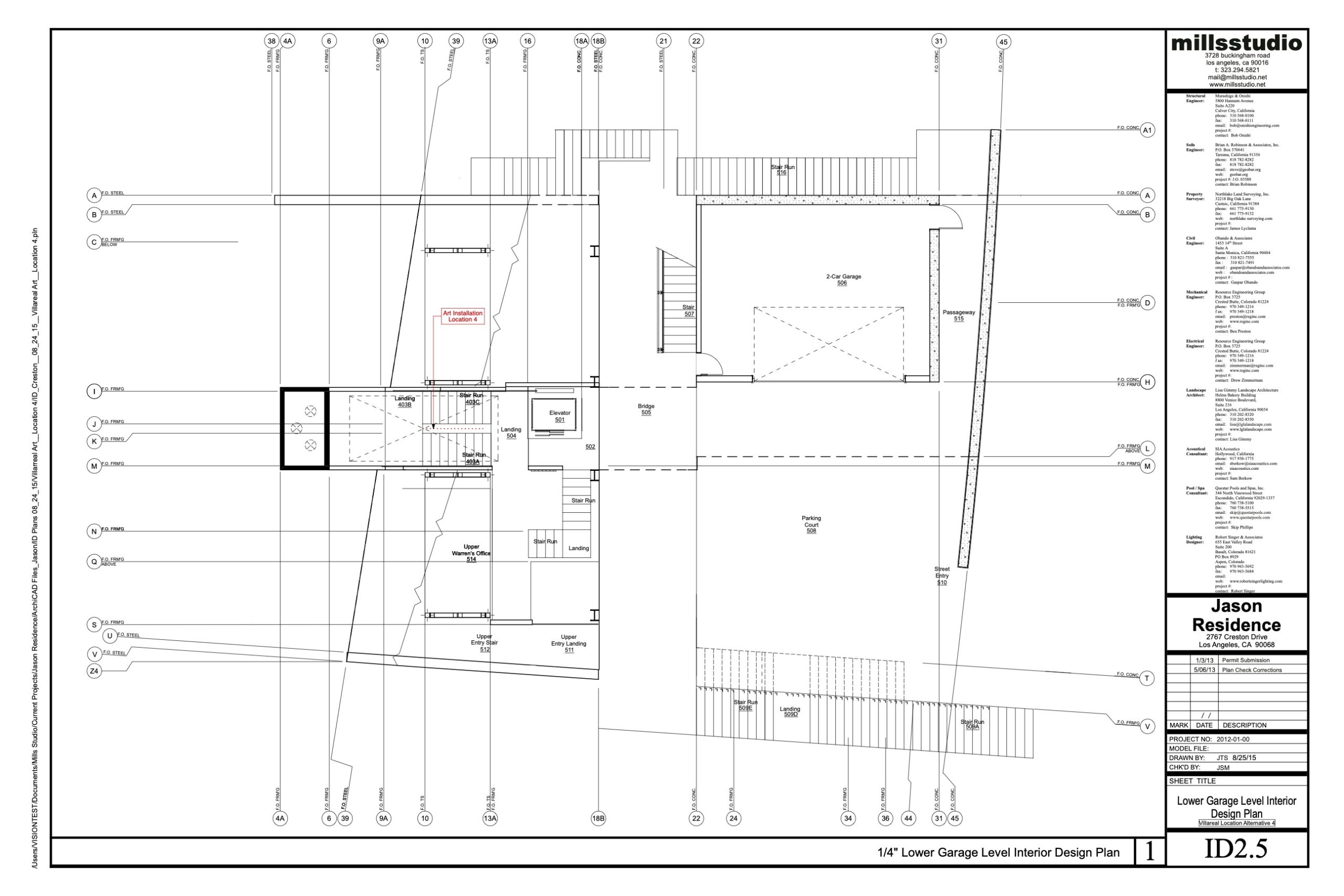 The Focal Chords design was developed sufficiently to produce a complete criteria of functional, technical, and artistic requirements sufficient to both implement the house design and allow members of the light artist community to propose a specific implementation and content. mills studio developed an informal RFP as a starting point for interested third parties to propose a work aligning with the developed criteria.