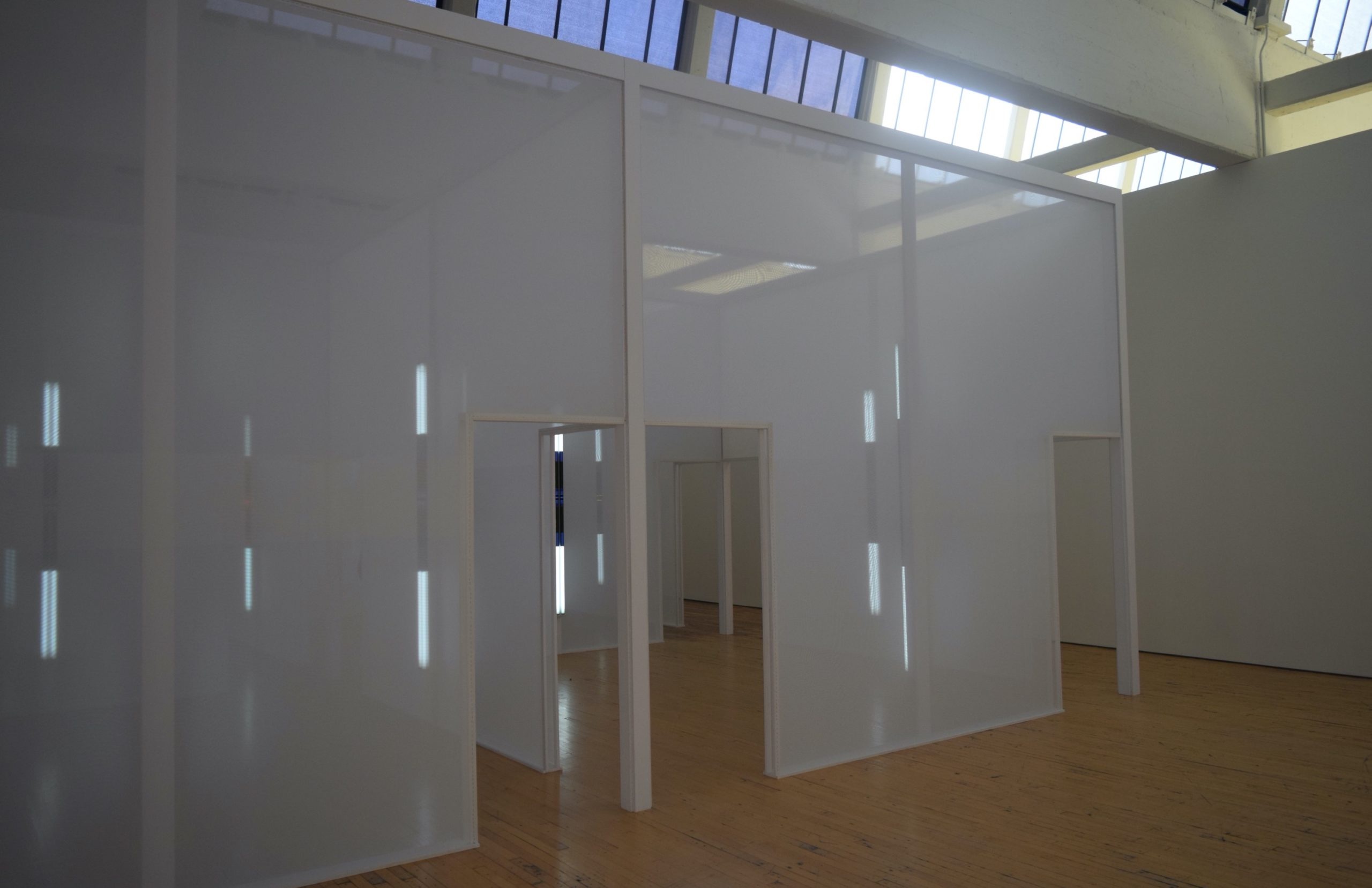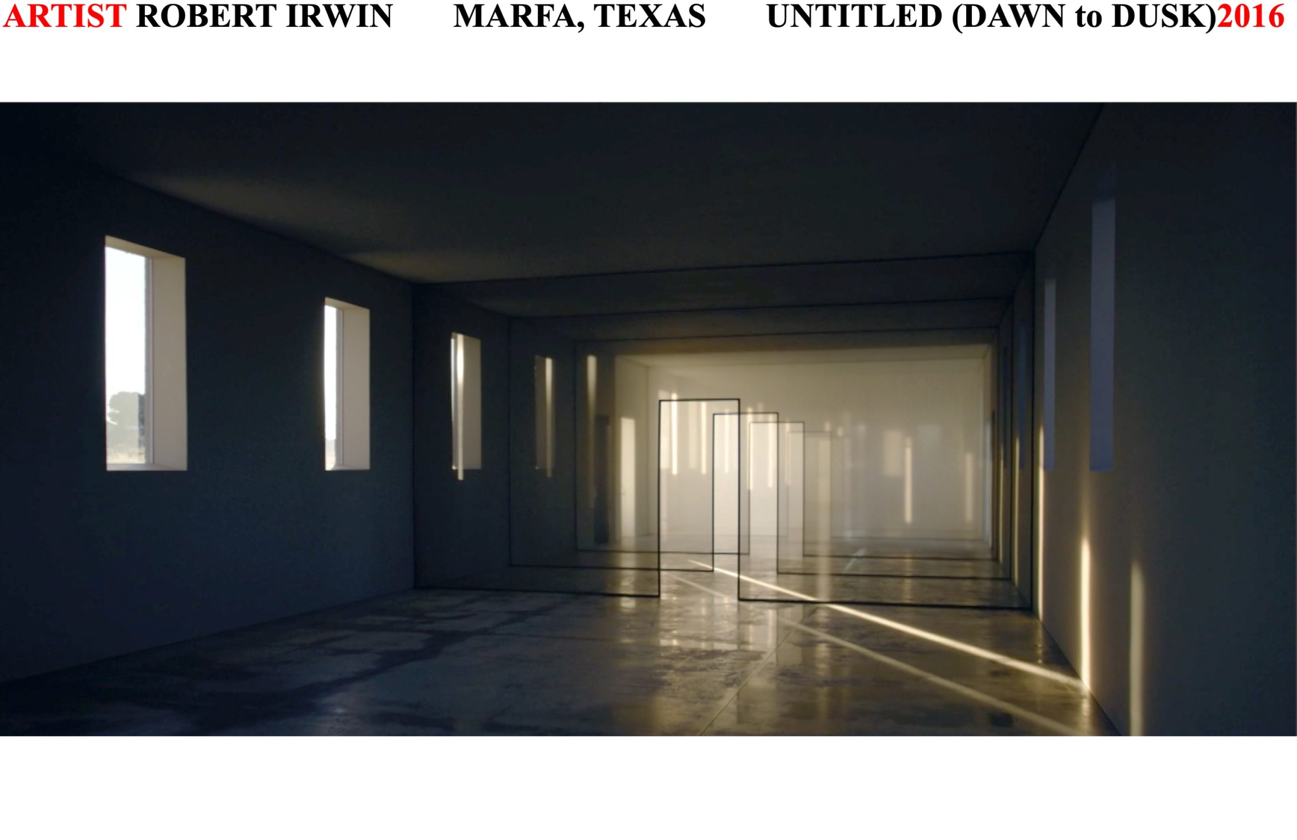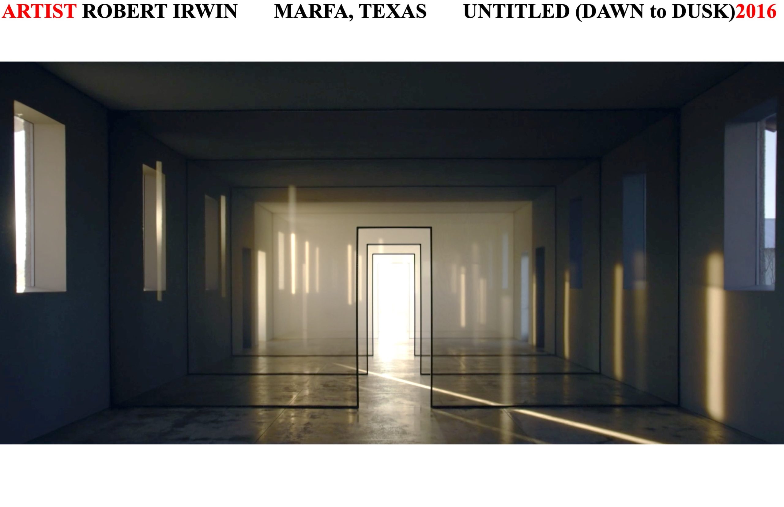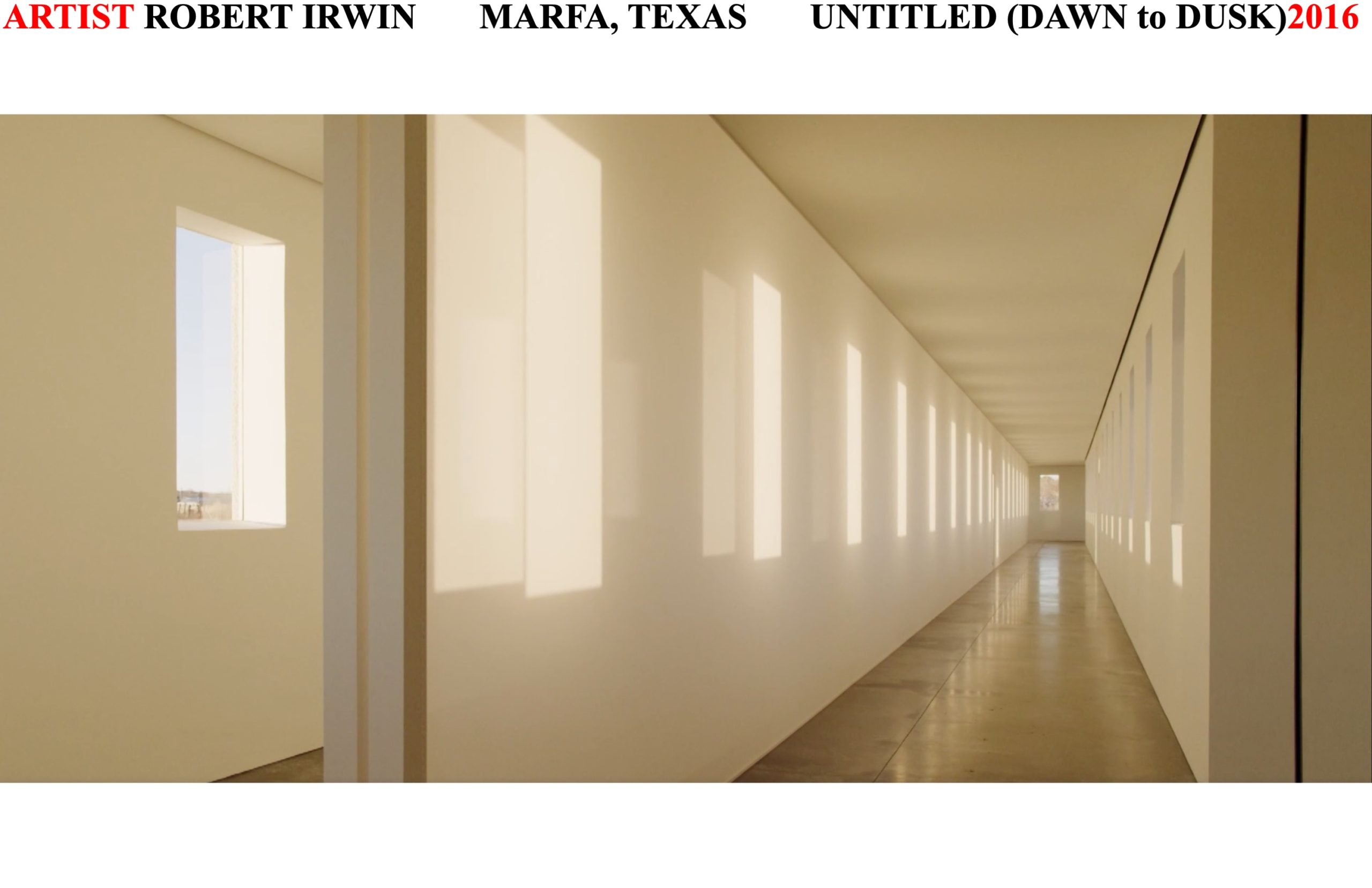 Robert Irwin’s first scrim installation was at the Museum of Modern Art in 1970 and he has continued to create and exhibit scrim pieces to the present day. mills studio directly experienced Irwin’s installations at the Whitney Museum of Art 2013; Dia Beacon, 2015; Spruth Magers Gallery, 2018; and Chinati Foundation at Marfa Texas, 2016. Since scrim pieces are about your experience of phenomena by directly seeing and directly being, consideration of these particular four installations inspired specific thoughts on how to use scrim like materials to dynamically transform the spatial experience of the DTS Project House.