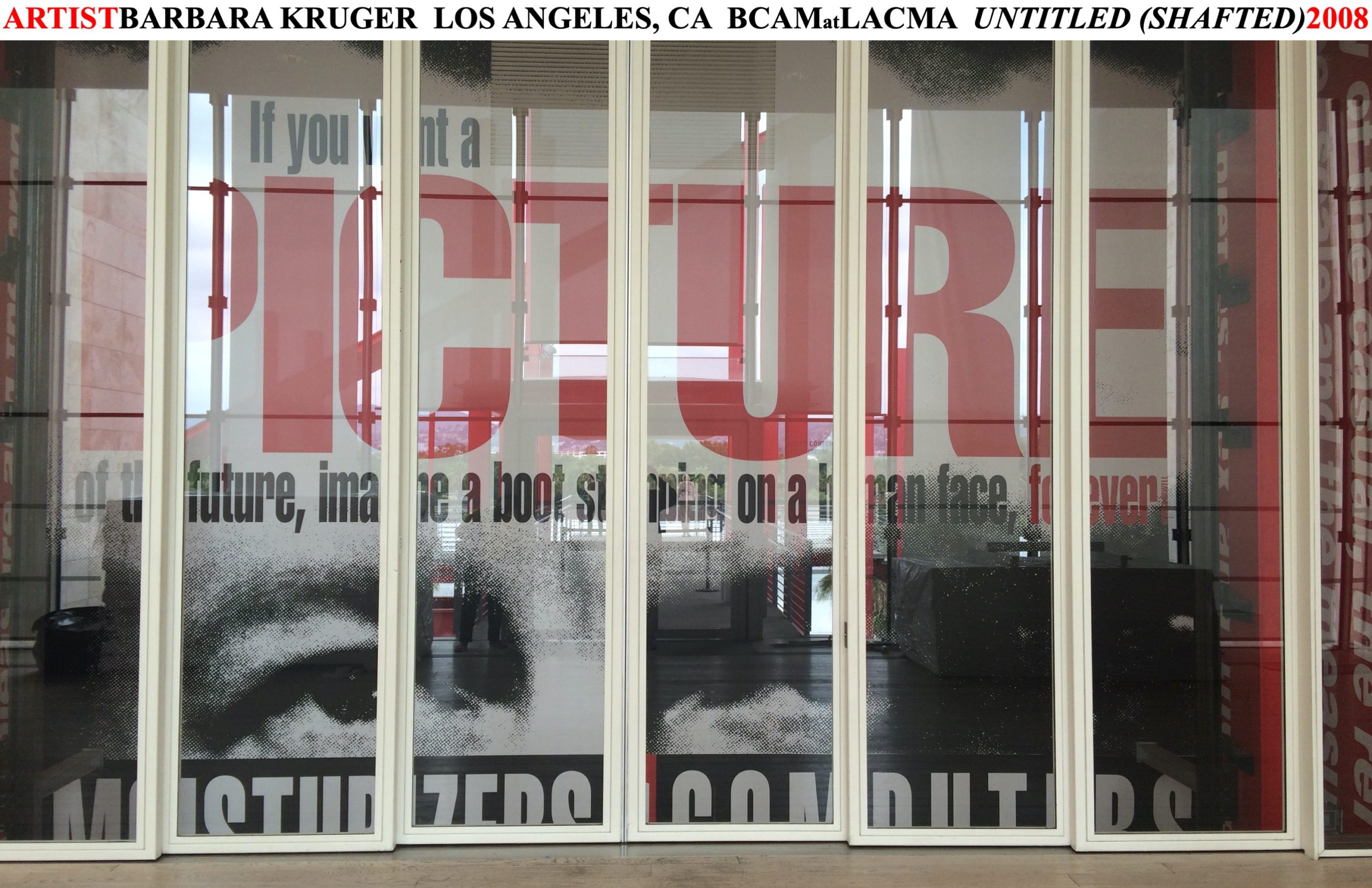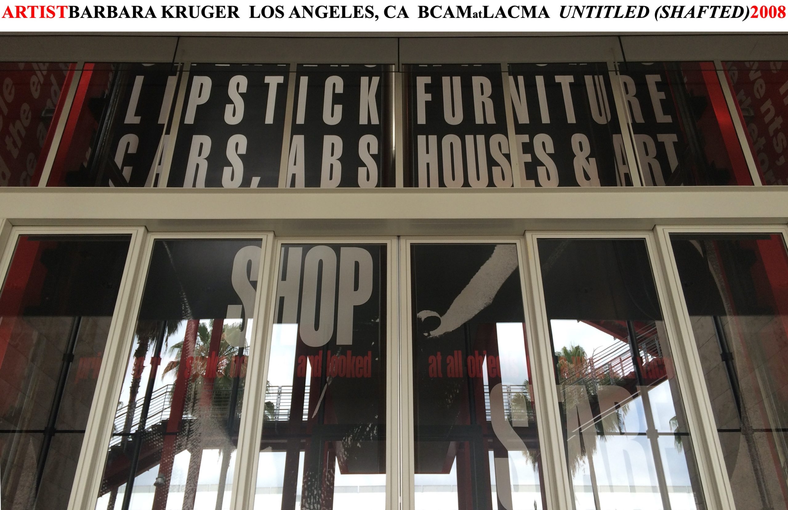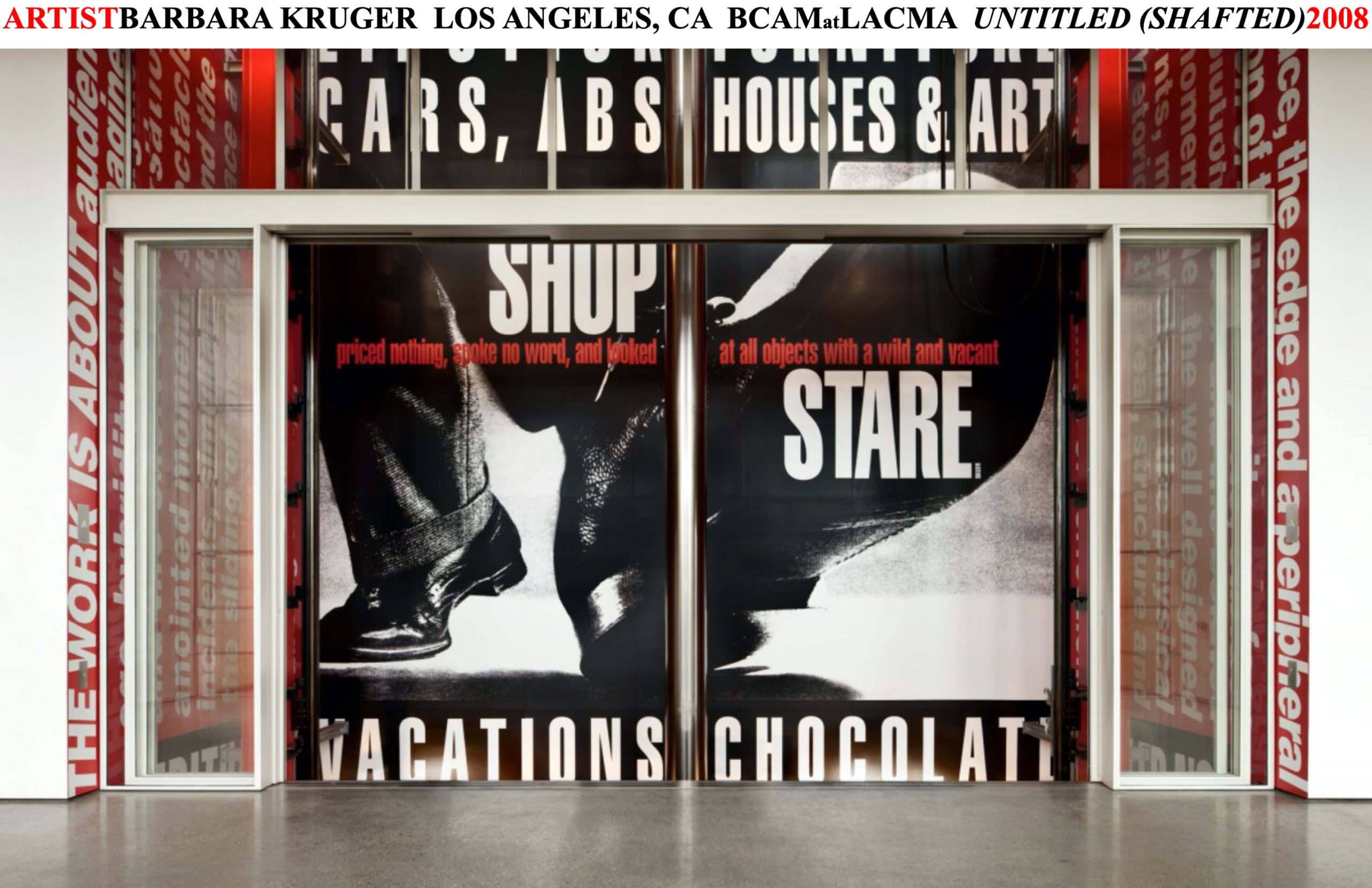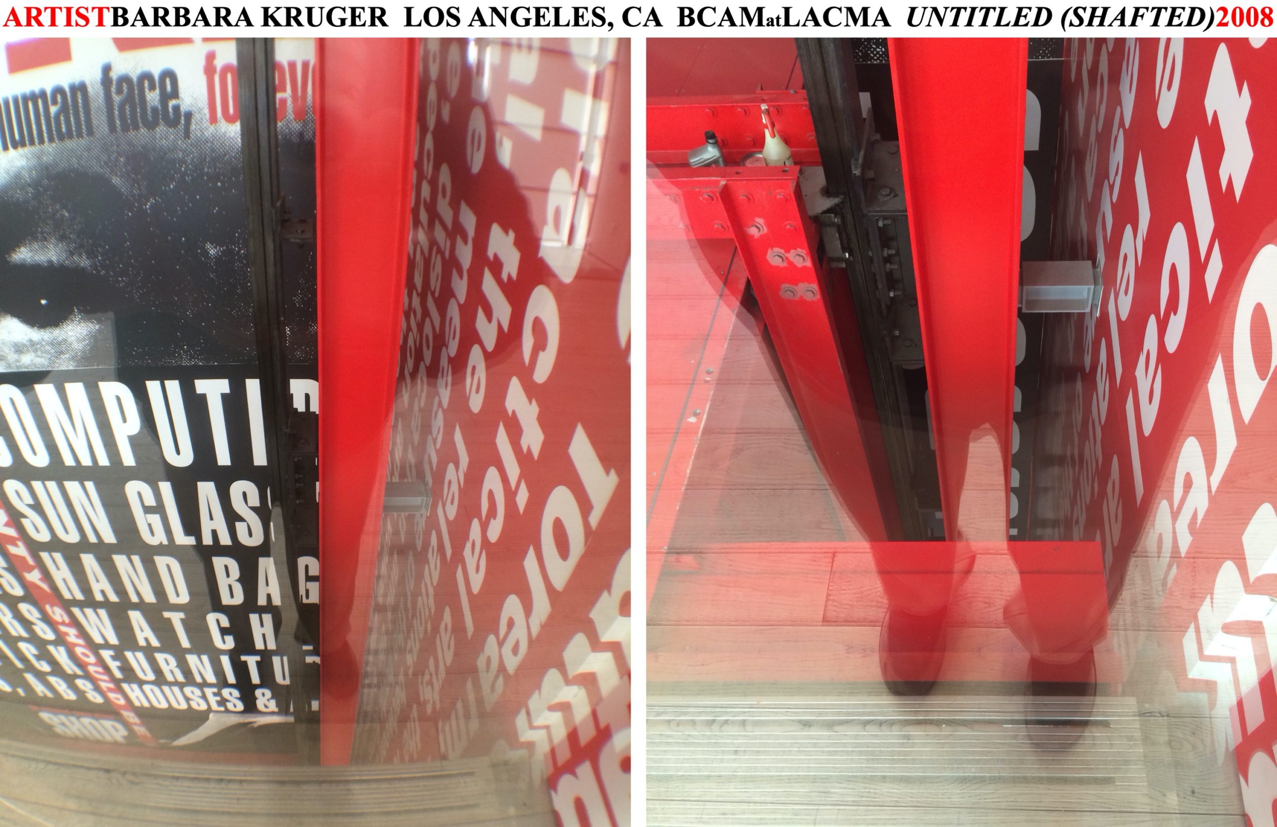 Barbara Kruger’s 2008 installation Untitled (Shafted) in the elevator shaft of Renzo Piano’s Broad Contemporary Art Museum at the Los Angeles County Museum of Art is a distinctive example of using an architectural condition toward an artistic end. The multiple story installation uses text and graphics to make both a social and visual statement. Waiting for an elevator is transformed into an aesthetic experience and points to how a rather utilitarian function can be treated in an artful way.