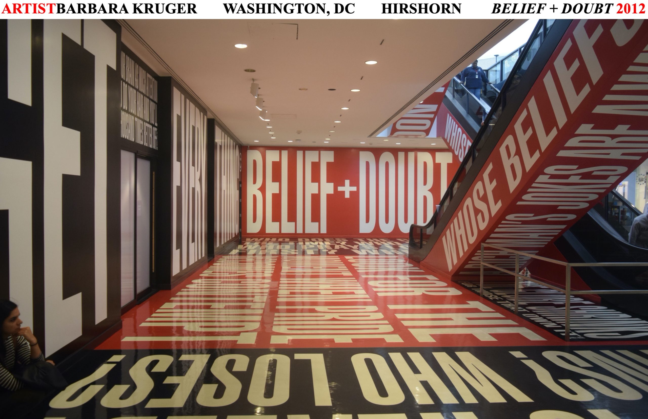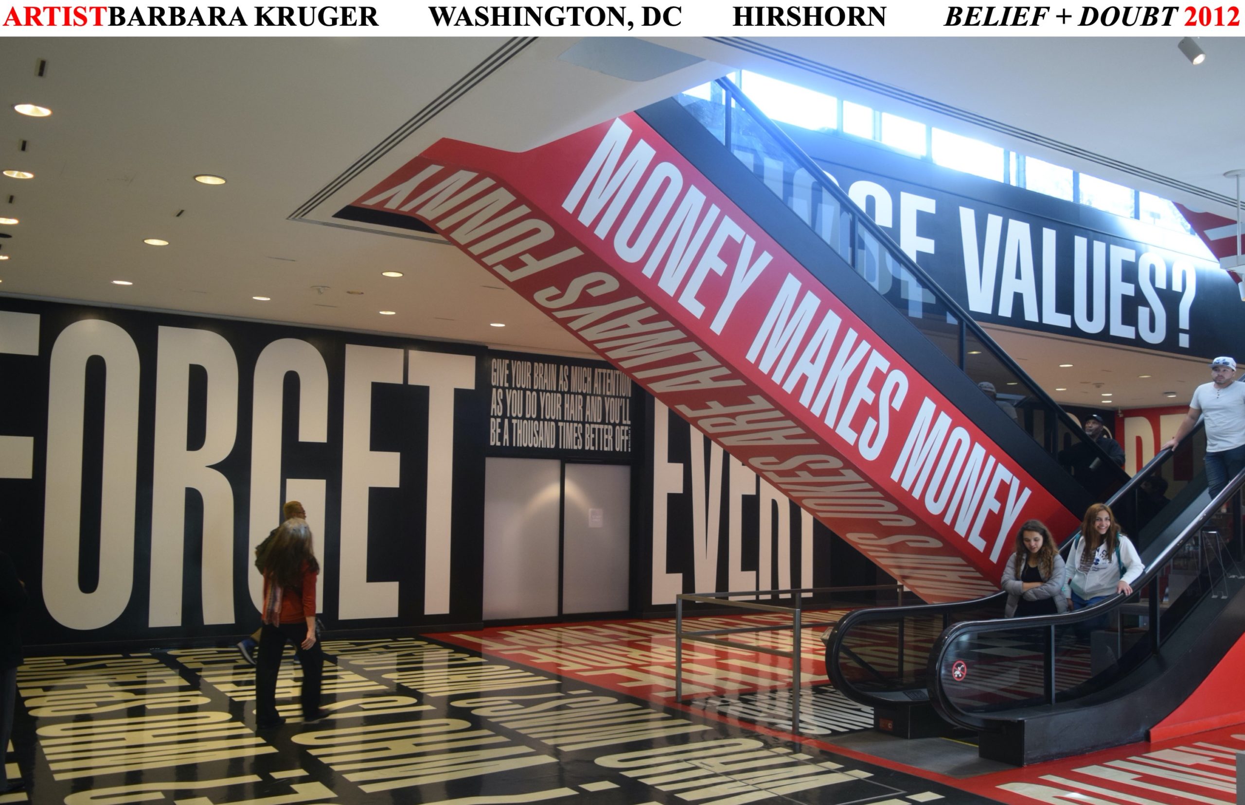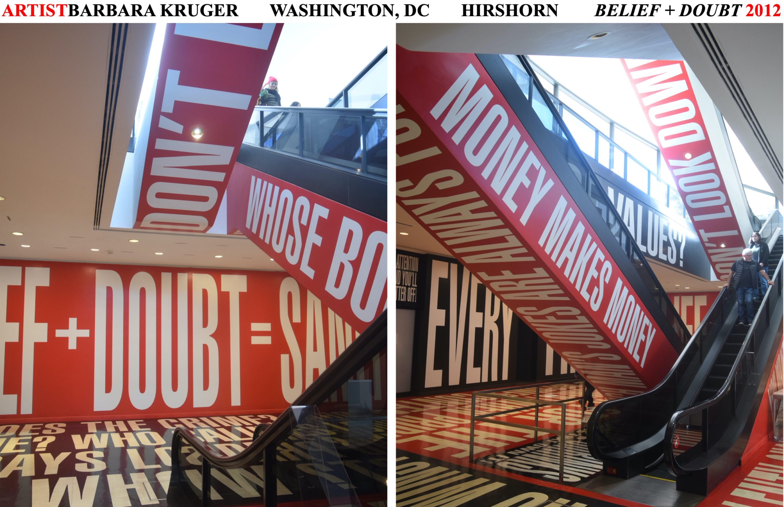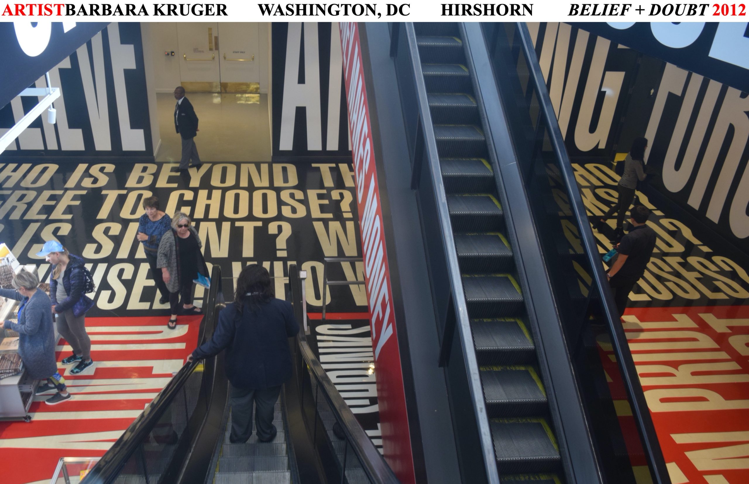 Barbara Kruger’s 2008 installation Untitled (Shafted) in the elevator shaft of Renzo Piano’s Broad Contemporary Art Museum at the Los Angeles County Museum of Art is a distinctive example of using an architectural condition toward an artistic end. The multiple story installation uses text and graphics to make both a social and visual statement. Waiting for an elevator is transformed into an aesthetic experience and points to how a rather utilitarian function can be treated in an artful way.