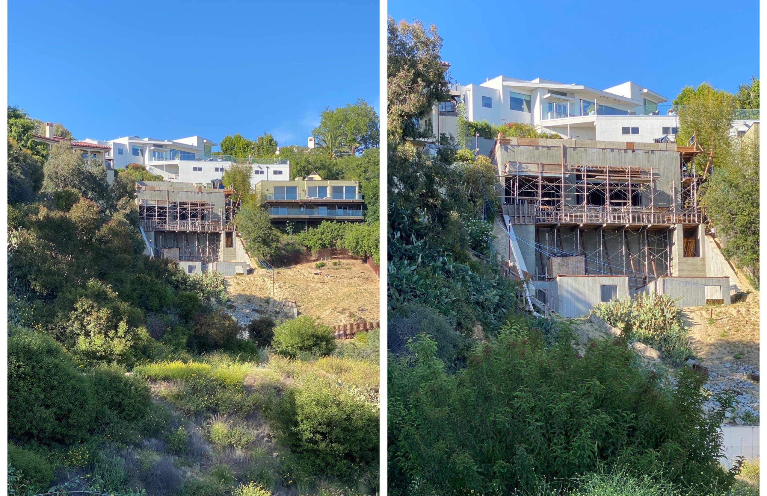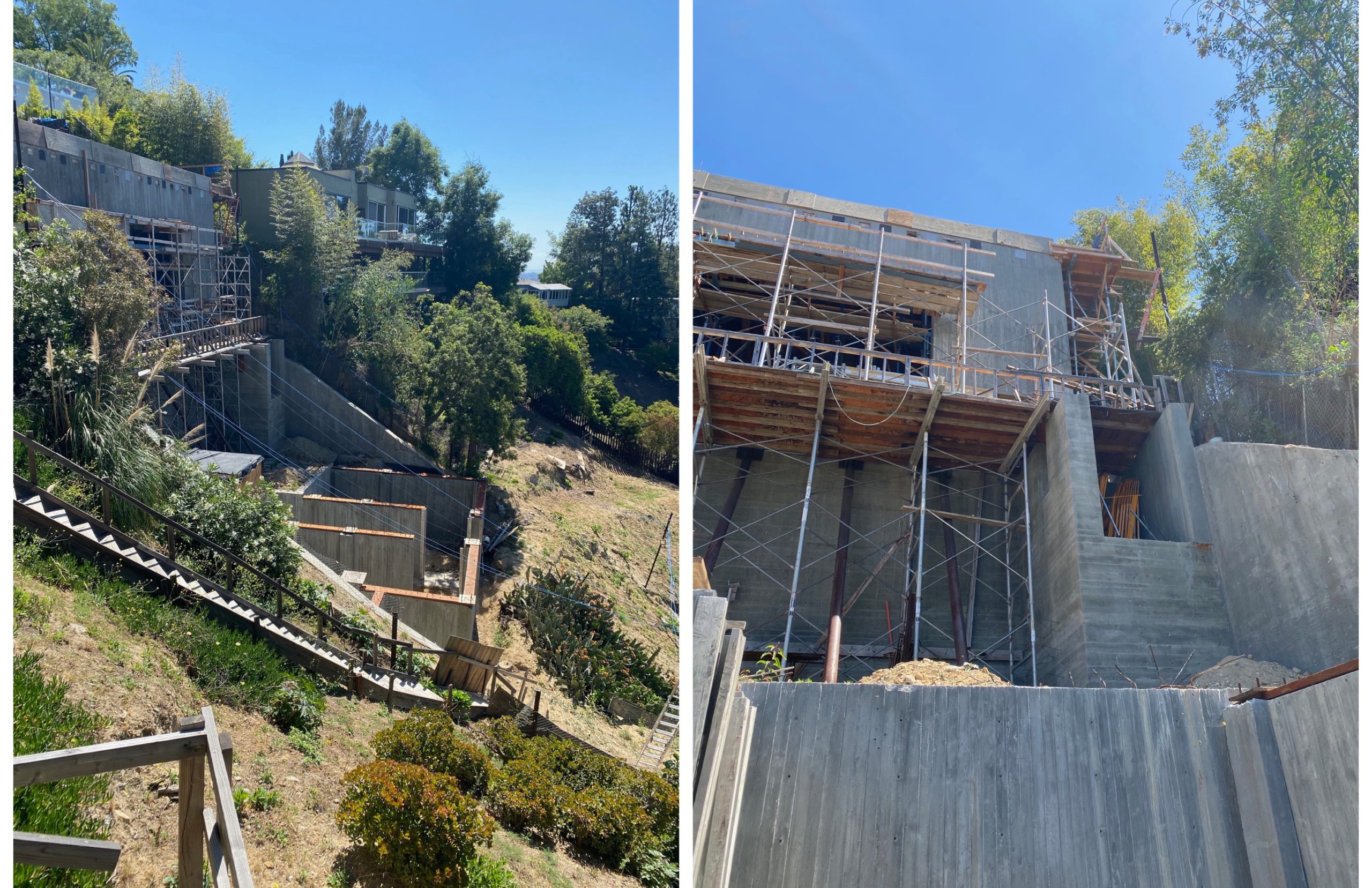 At significant stages, such as concrete pours and steel installation, the DTS Project House construction is documented with drone photography and videography. Documentation with the drone provides perspectives that are useful and compelling, especially on the hillside site where changes in elevation provide very different perspectives. The ability of the drone to see and record the entirety of the construction and the surrounding context helps capture the full scope of the construction effort.