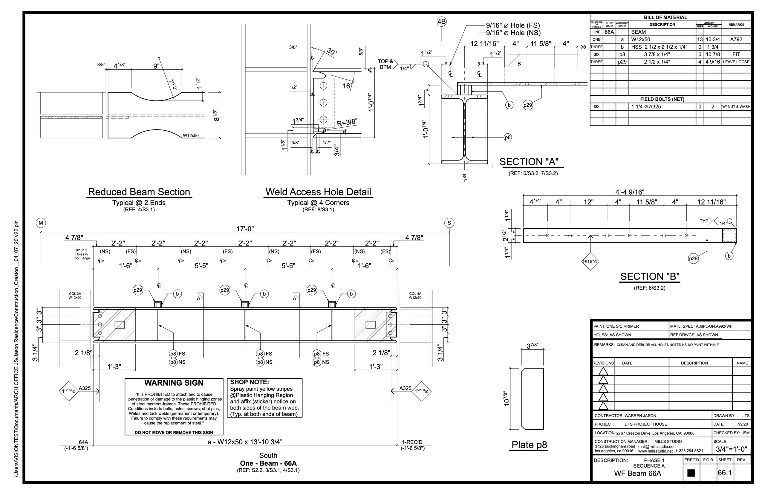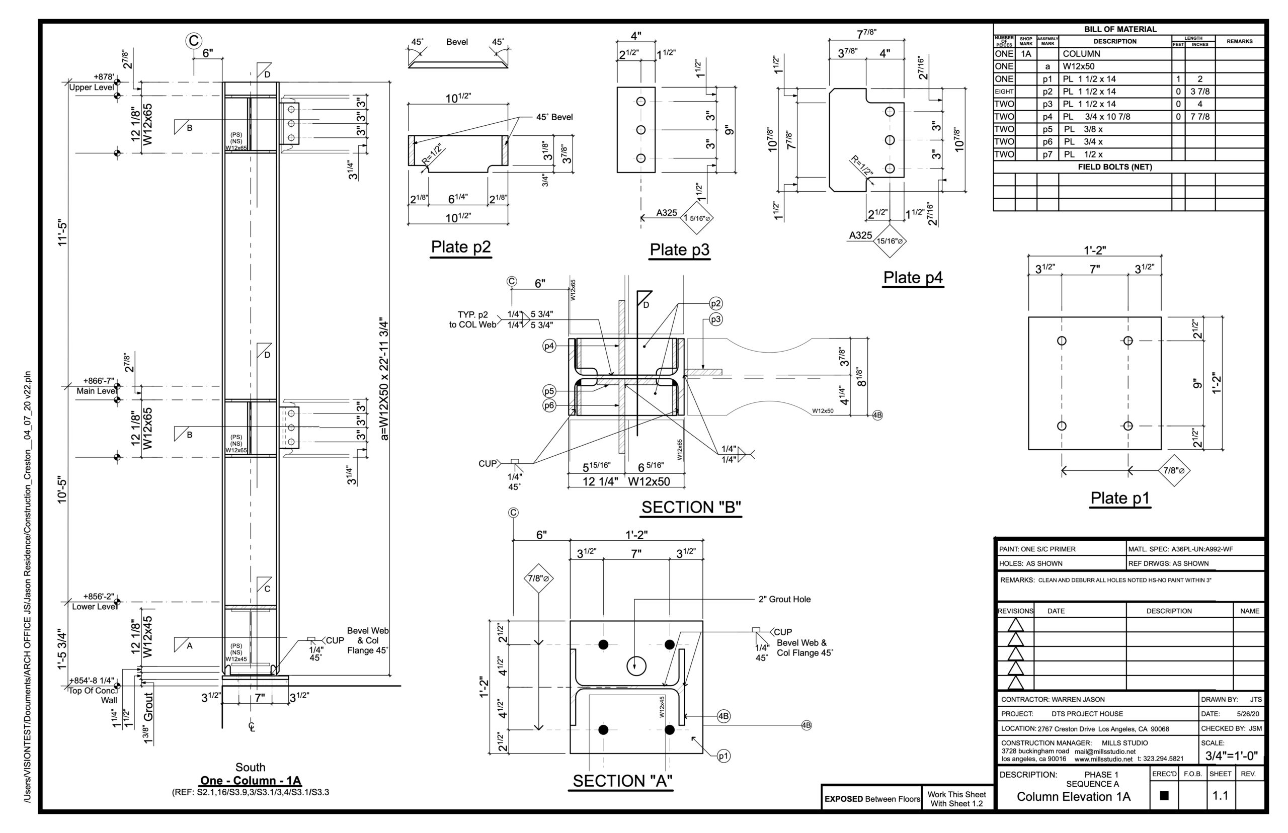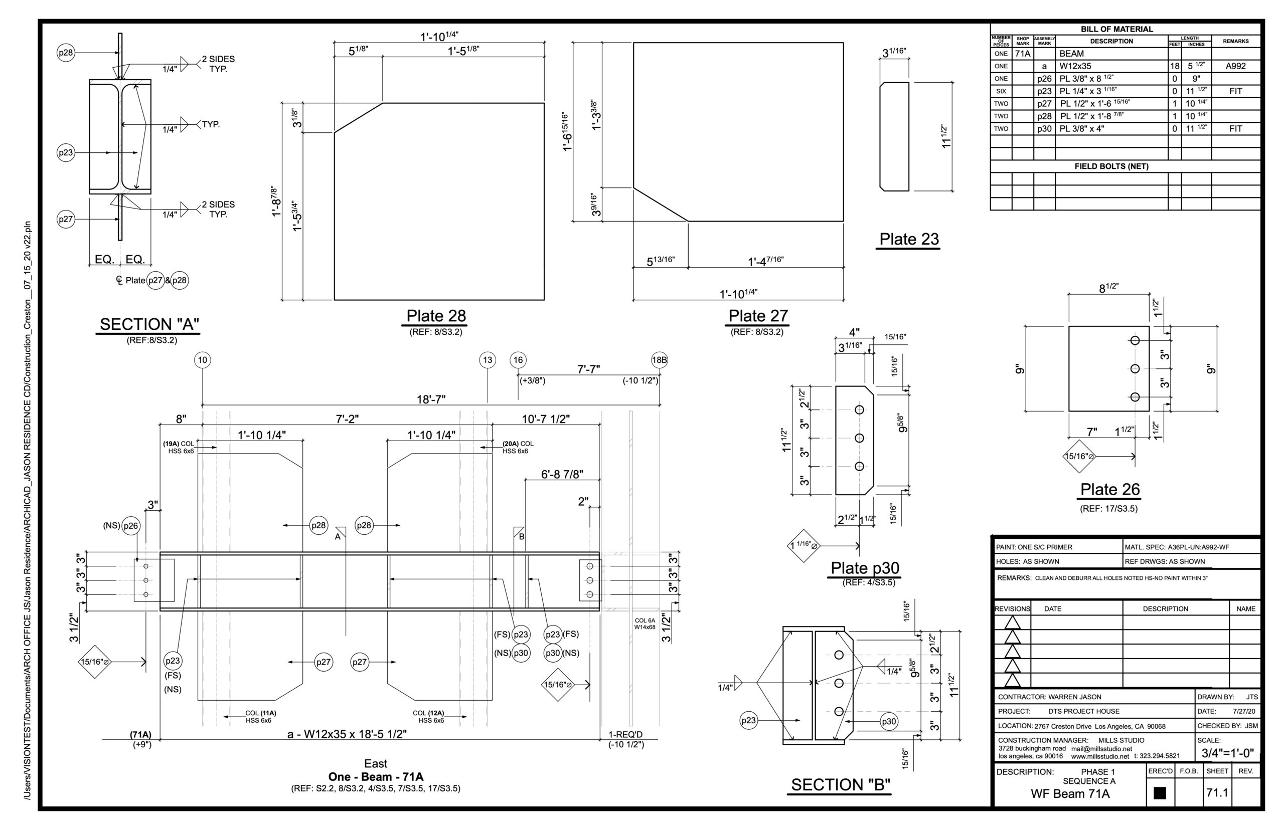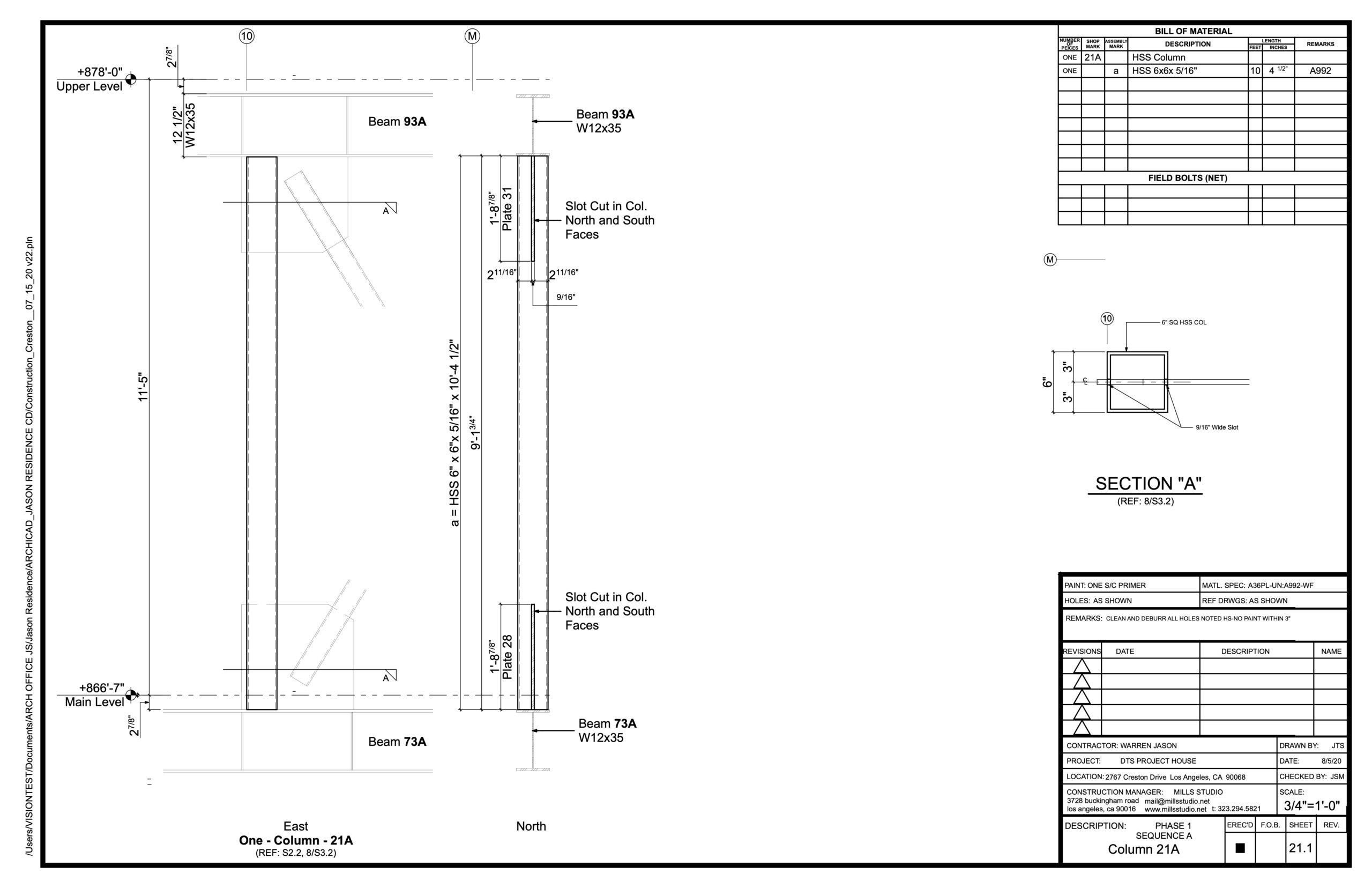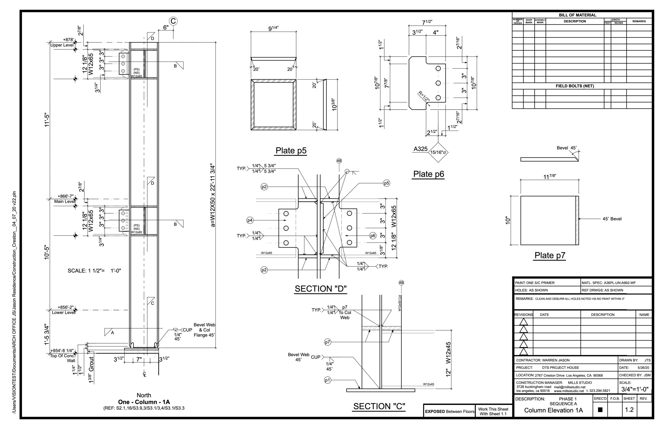 mills studio prepared the Shop Drawings necessary for the fabrication and installation of the structural steel.