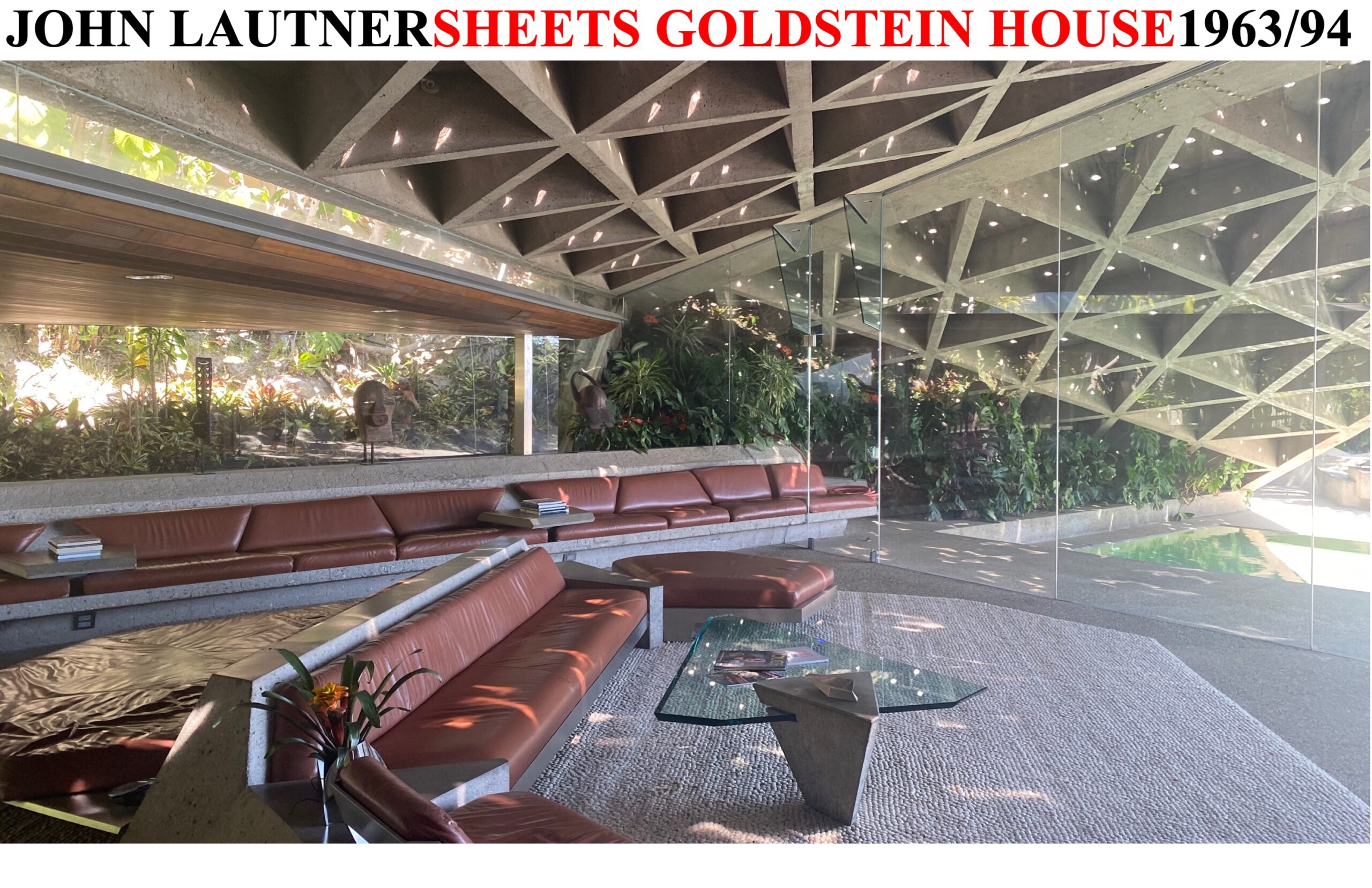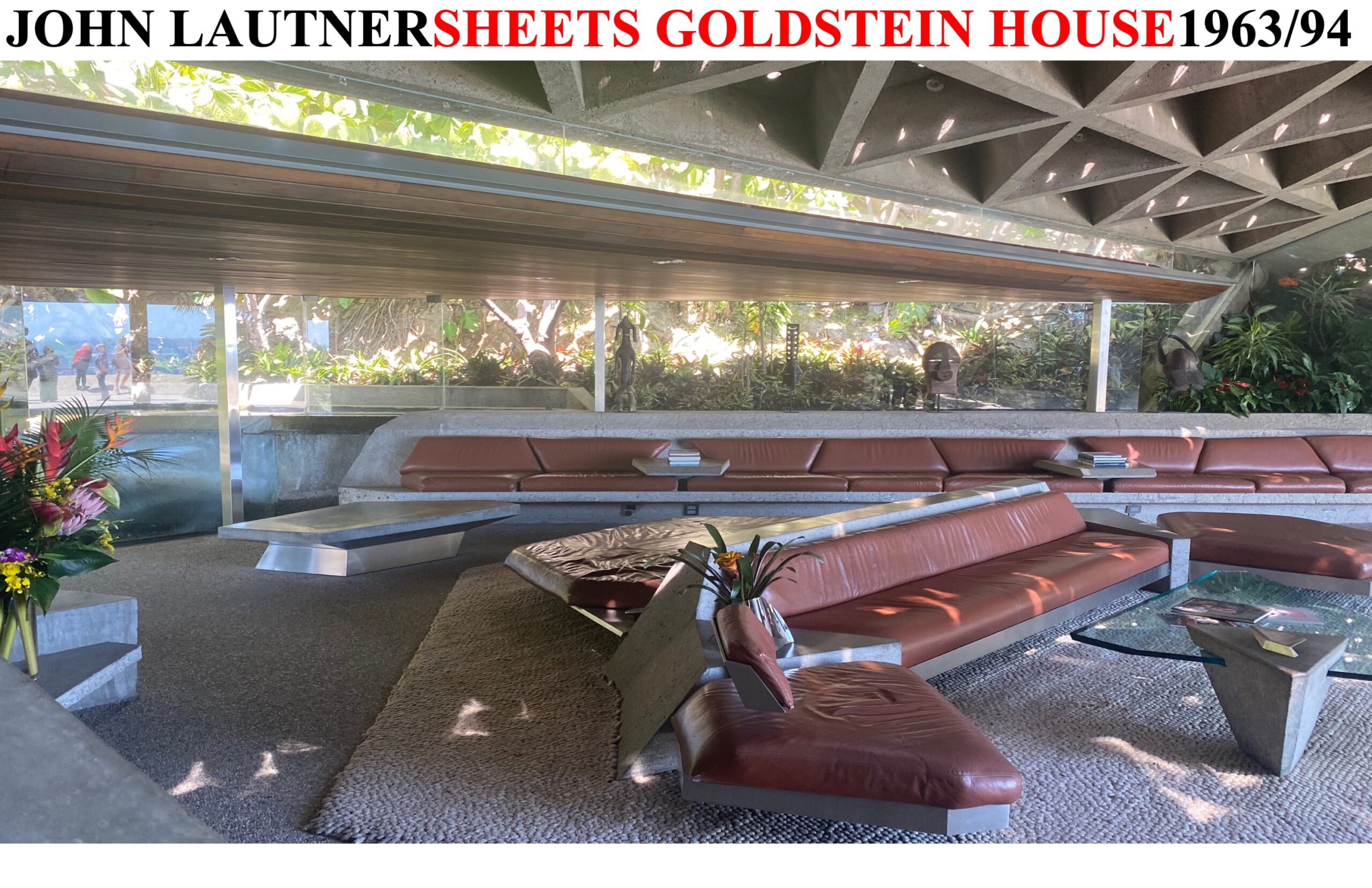 These connections are not established by using built-in or freestanding furniture but rather in how they are configured. John Lautner and Frank Lloyd Wright both favor built-in furniture but Wright typically places his built-ins at the perimeter with an inward focus, such as at Fallingwater and Taliesin West, and Lautner’s built-ins are more typically centrally located with an outward focus toward the larger community, such as at the Sheets-Goldstein House.