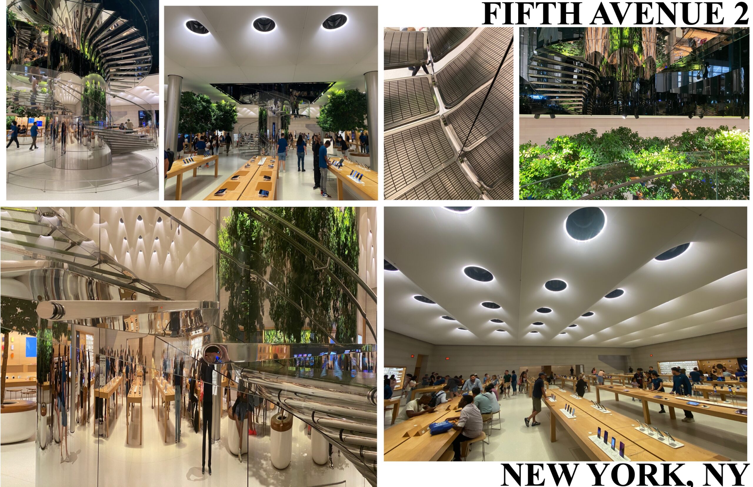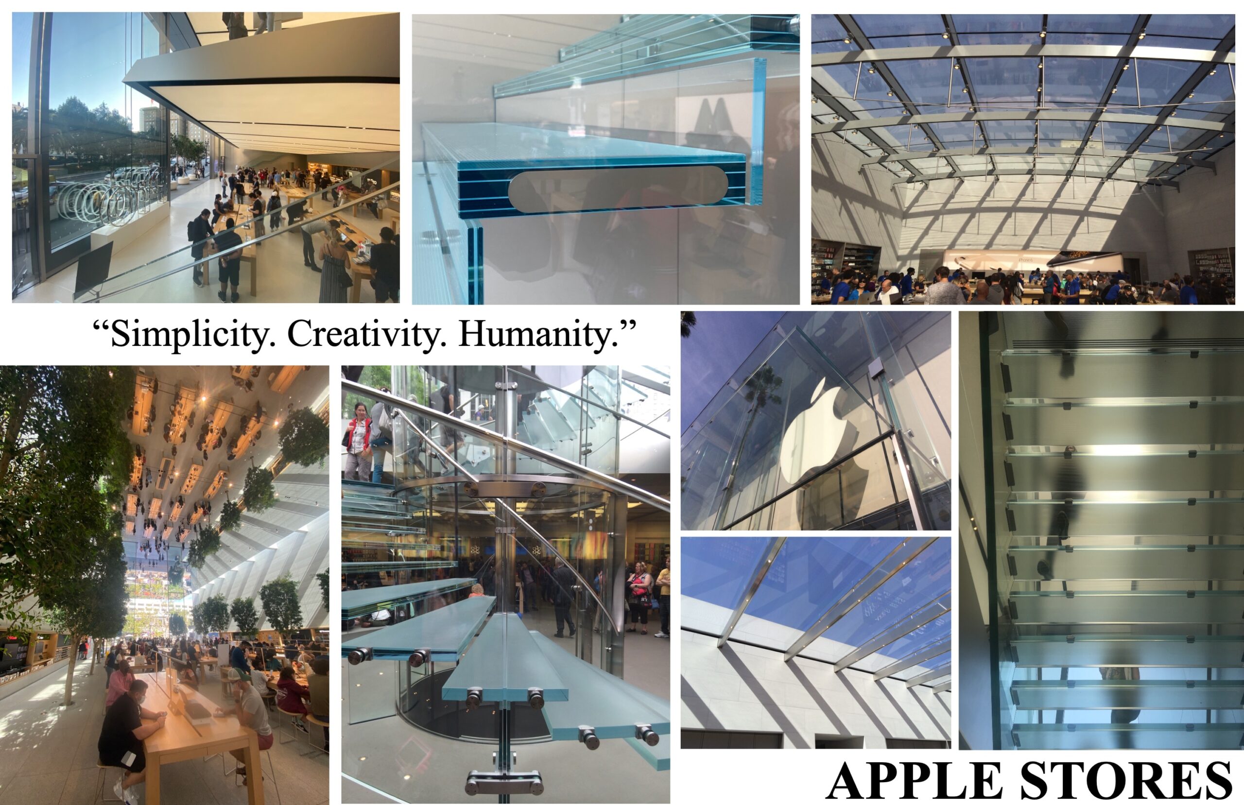 Commercial interiors like those of Apple Stores, Tesla and EV Car Showrooms, and Dyson Demo Stores serve as sources of inspiration for how interiors can reinforce a larger intent. Projects and interior designs created to “sell” the idea of technology integrated into daily life are of particular interest because they express very directly how various attitudes toward technology can express themselves in architecture and design.